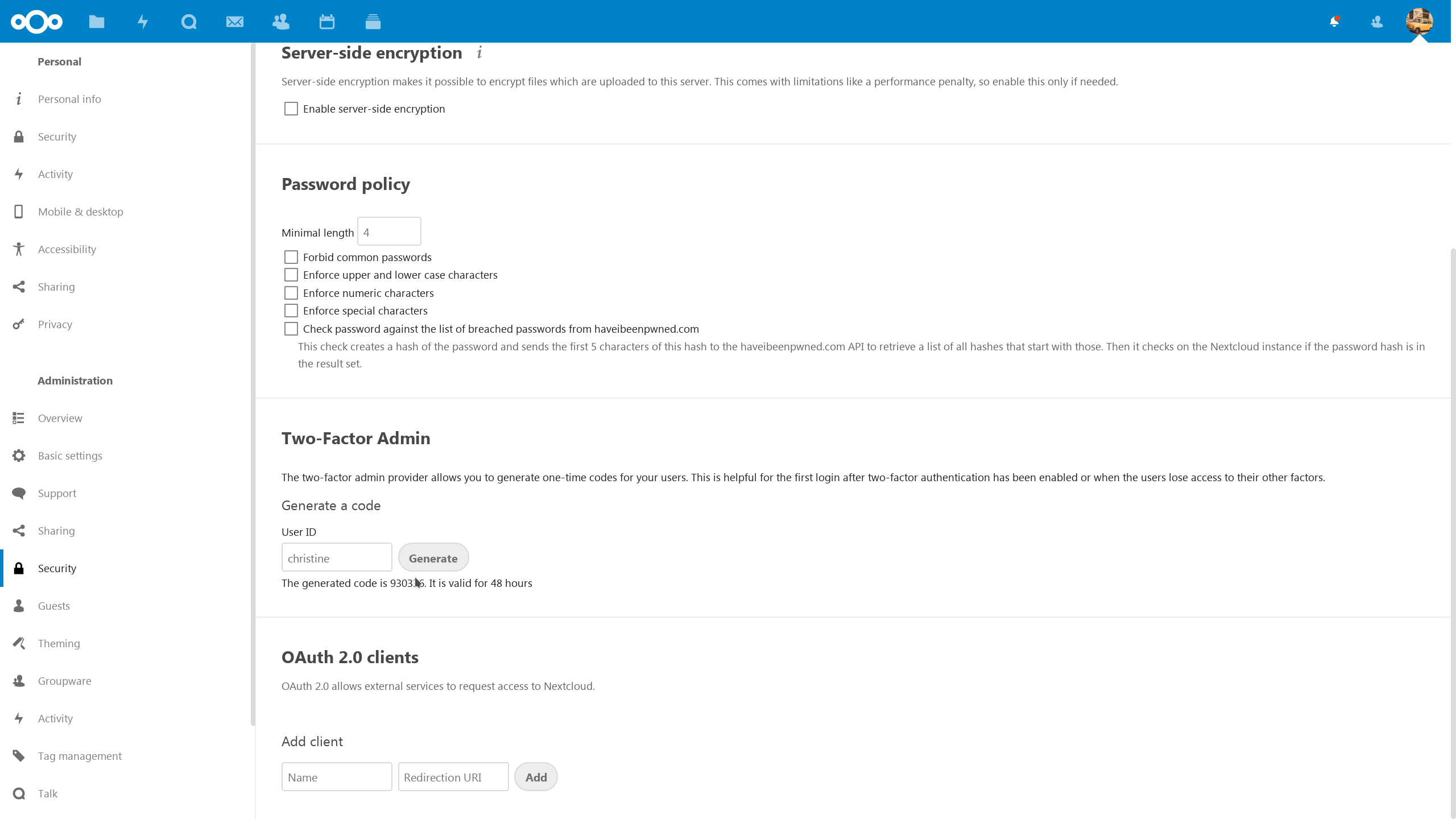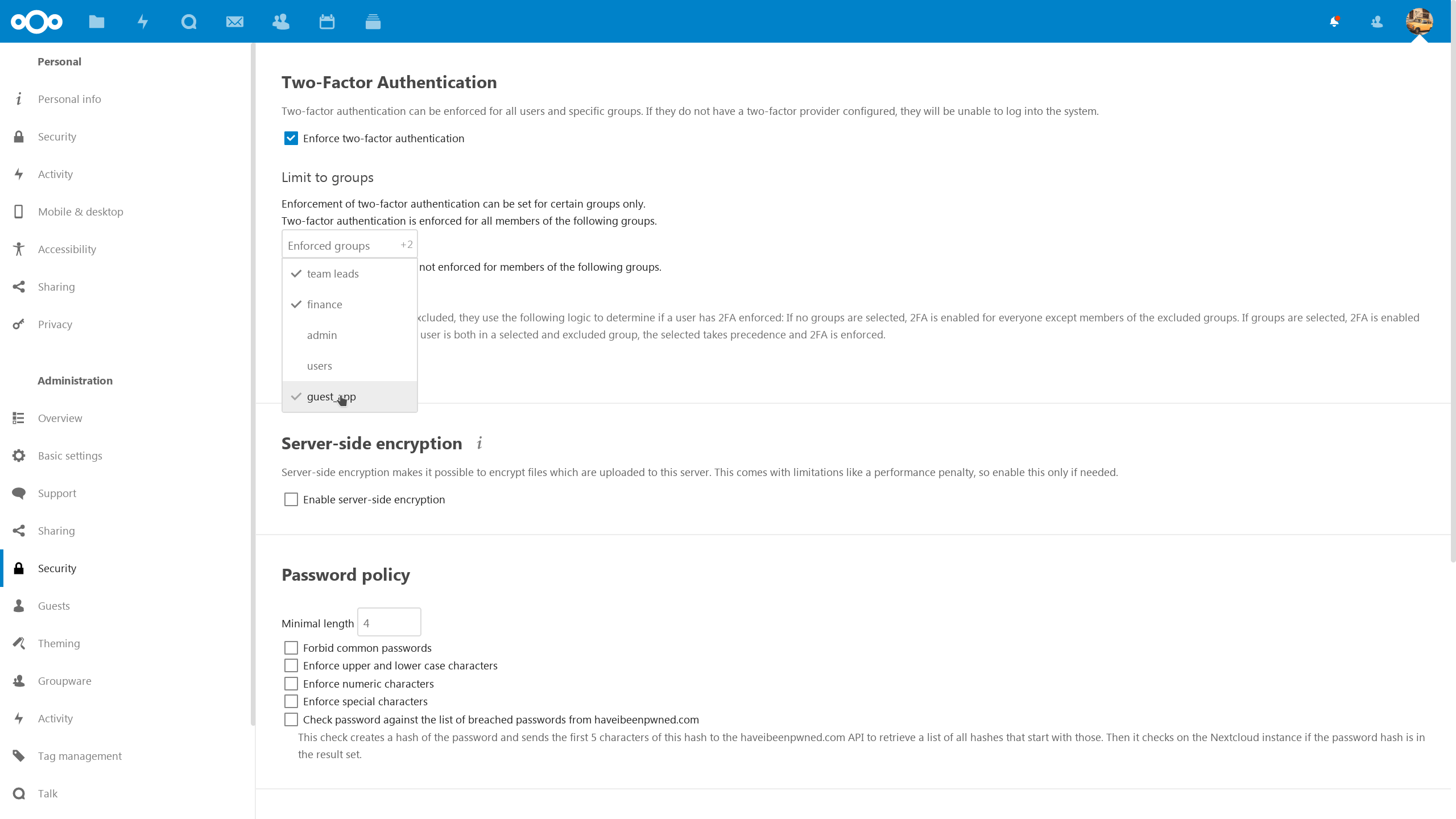 La seguridad de las contraseñas es extremadamente importante y Nextcloud sigue las normas más recientes y estrictas.