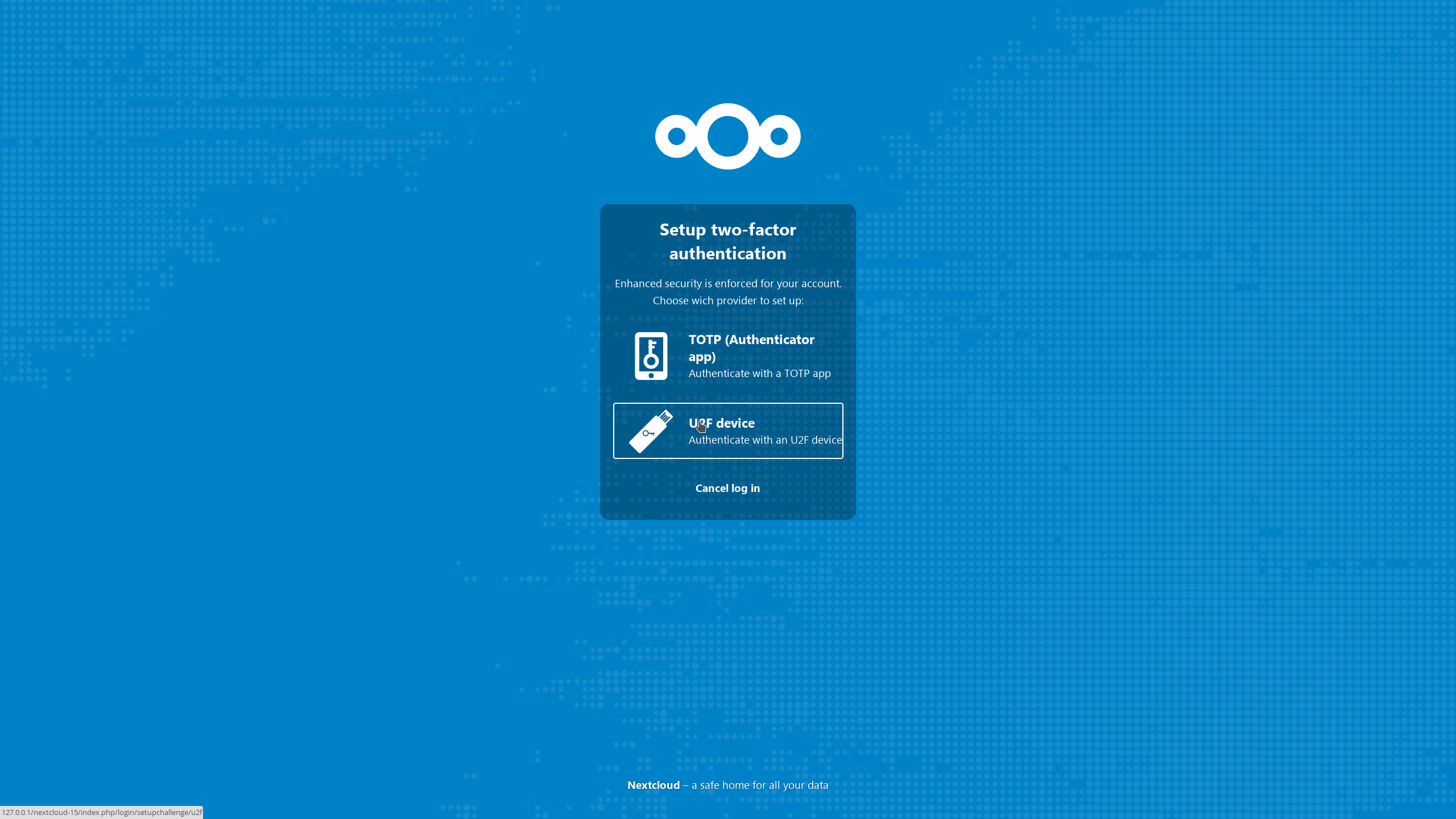 Nextcloud admite una amplia variedad de segundos factores y permite a los administradores imponer el uso de la autenticación de 2 factores. Segundos factores: